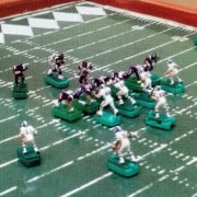 Respect. That was the back to basic theme in this game. Coach Hunter tried to carry his hot hand passing from last game into this game but fell short. His respect for Coach Robinson’s defense against the run helped formulate his game plan. So much so that he went for a fourth down deep in his own territory and missed the pass. The result of that poor execution of the play resulted in a Oilers score a few plays later and a 13-0 lead. Coach Hunter and his Cowboys did draw close late in the game and had the ball with a chance to pull it out but again came up short on a fourth down play. Final score 13-7 Oilers. Post game comments from both Coaches about each others defense, first Coach Hunter, “Credit to the Oilers defense, it was smothering. Hard getting guys open and when I did, I couldn’t hit a whale!” Coach Robinson said,”Dallas has an excellent squad. It was difficult navigating around Coach Hunters defense.”